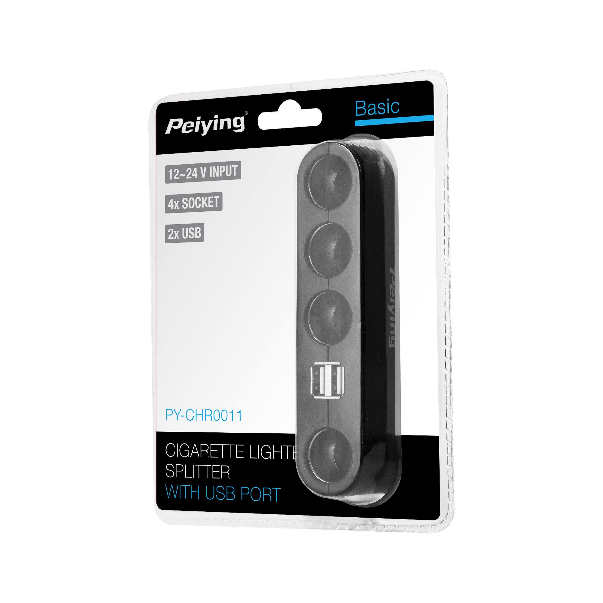 The splitter offers four cigarette lighter sockets, which allows you to power various devices at the same time, such as GPS navigation, video recorder or phone charger. An additional USB port with an output voltage of 5 V and a current of 2 A ensures fast charging of mobile devices.