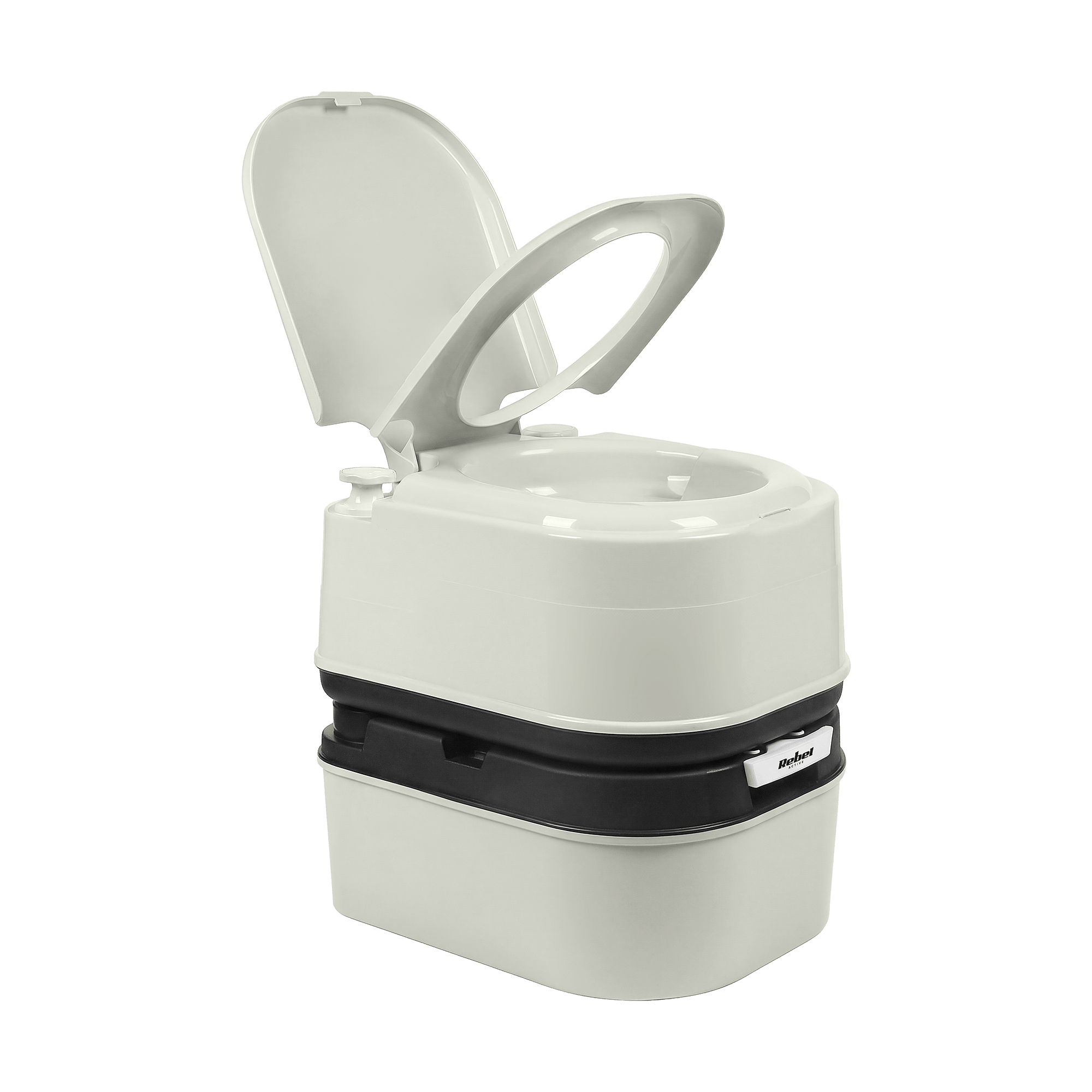 The Rebel Active tourist toilet is equipped with two separate tanks – for clean water and for waste. The separating system can be activated at the touch of a button to quickly and hygienically disconnect the waste container, making it much easier to empty. This solution increases the comfort of use and allows you to maintain a high level of cleanliness during travel and camping.